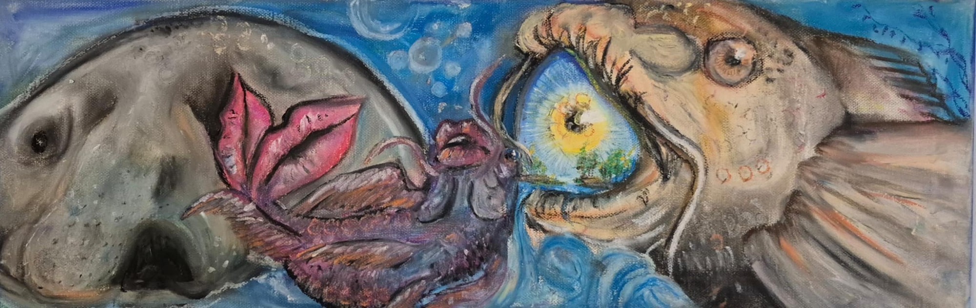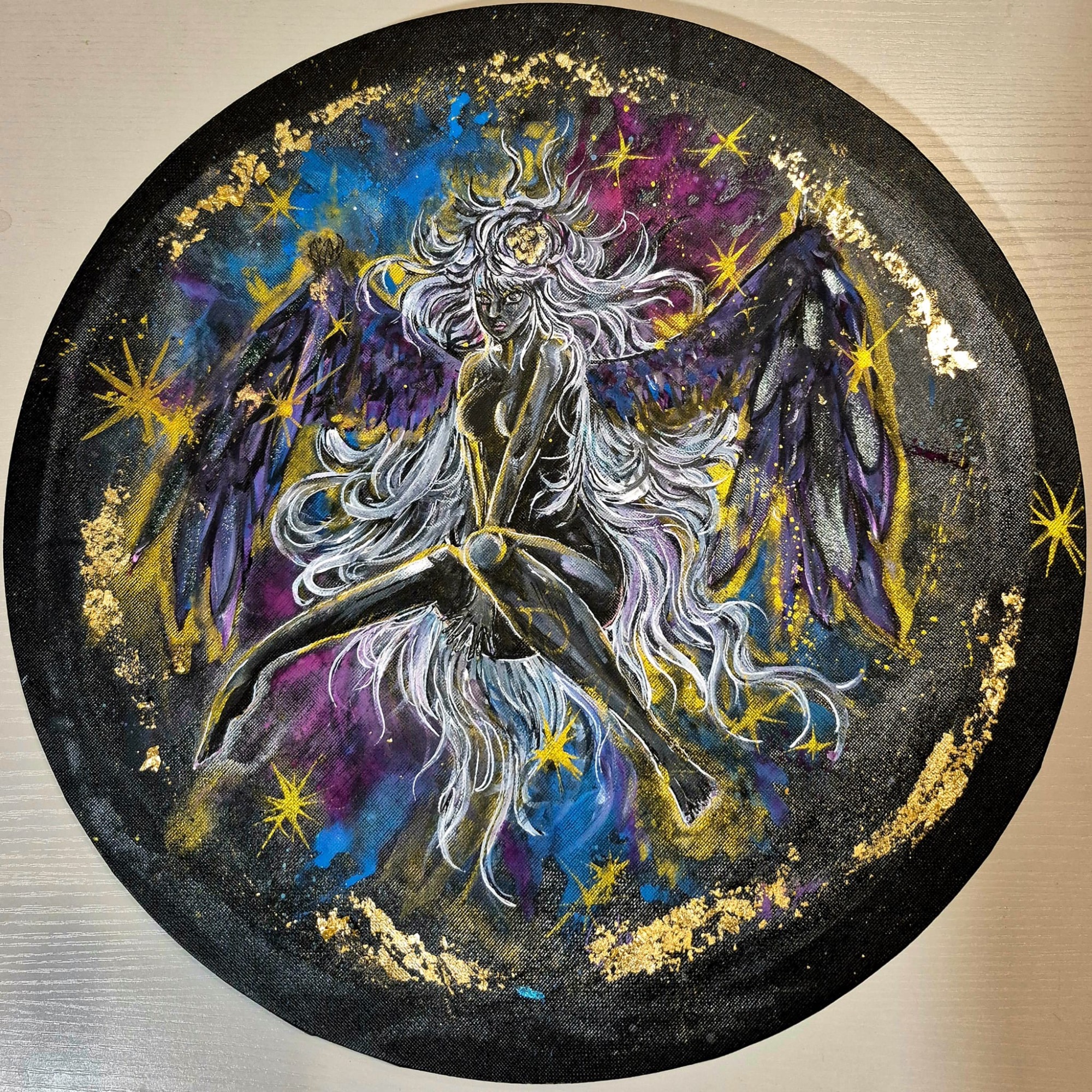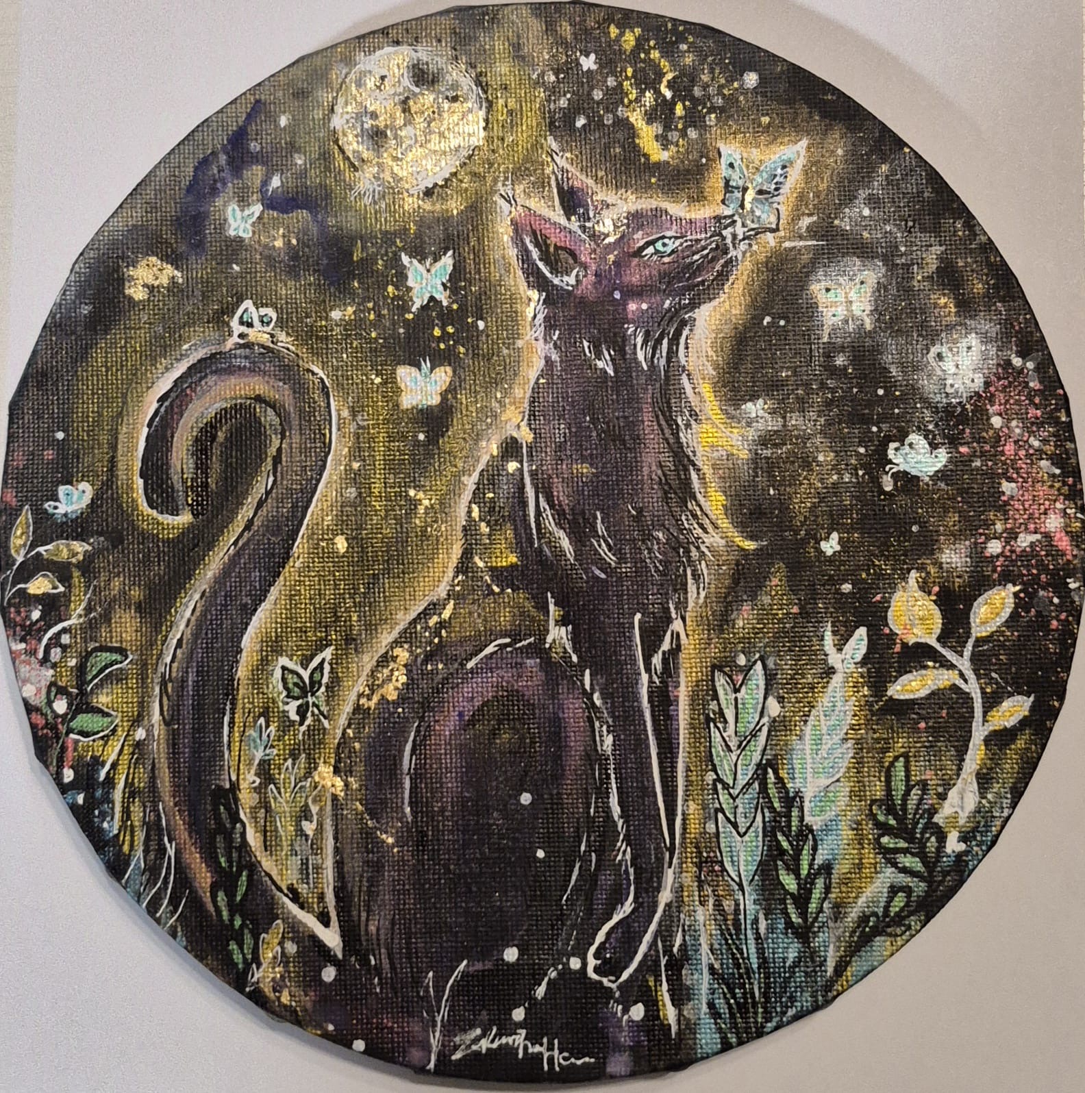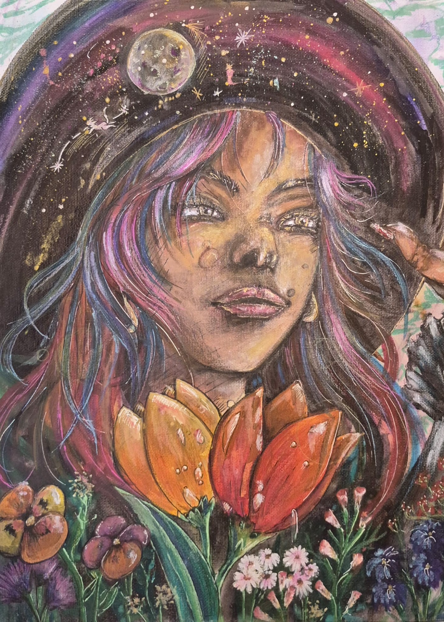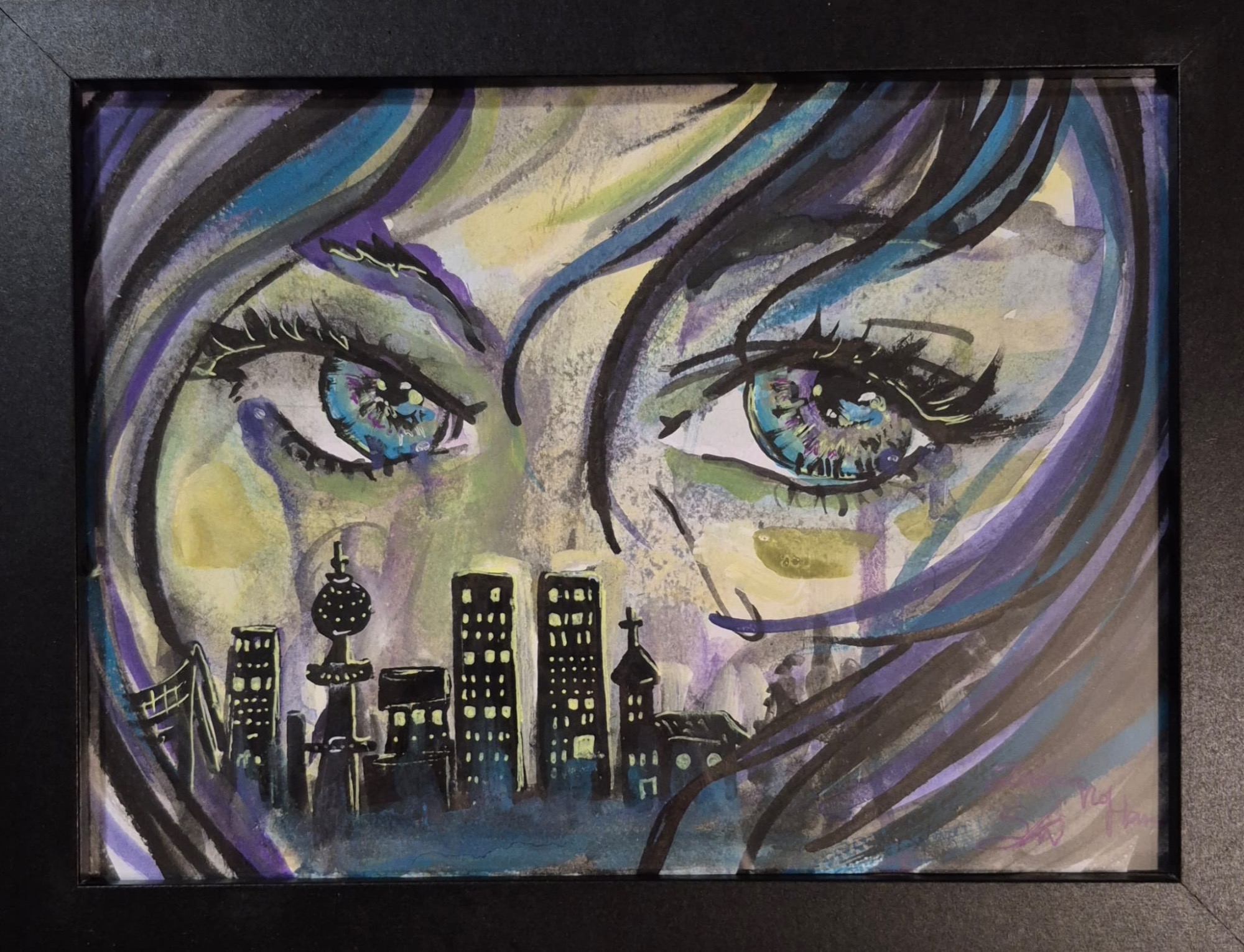 kreative München gezogen, wo ich heute lebe, arbeite, male – und gemeinsam mit meiner Familie und drei Katzen das Leben gestalte. Die Kunst begleitet mich, seit ich denken kann. Schon als Kind war ich die, die gebeten wurde, "mal schnell was zu zeichnen", und selten konnte ich einen Stift aus der Hand legen. Mit elf entdeckte ich Manga für mich – nicht nur als Geschichten, sondern als Tor in eine andere Welt. Die Aquarellcover meines Lieblingskünstlers faszinierten mich sofort. Ich begann, mit Aquarell zu experimentieren, verliebte mich in diese störrischen, lebendigen Farben, die scheinbar selbst wussten, wohin sie wollten. Bis heute arbeite ich mit Aquarell, aber auch mit Acryl, Öl, Buntstiften – je nachdem, was das Gefühl braucht.